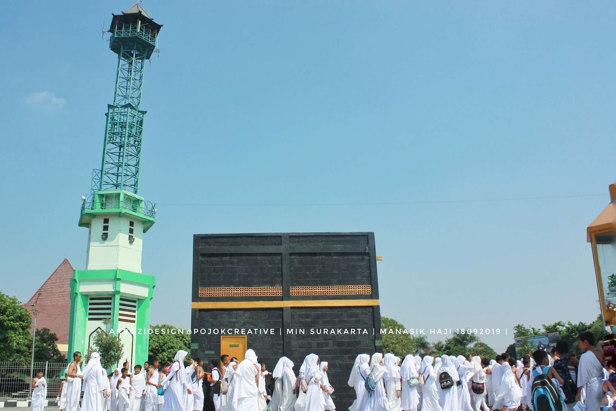 Pagi ini (18/09/2019), Kegiatan belajar mengajar Madrasah Ibtidaiyah Negeri Surakarta berada di Embarkasi Haji Donohudan, Boyolali. 486 Siswa didampingi Guru dan karyawan berkumpul di Embarkasi Haji sejak jam 07.00 WIB. Kegiatan Manasik ini adalah salah satu bentuk pengenalan dan praktek dari pembelajaran ibadah Haji. Selain teori di kelas, siswa diajak untuk praktek langsung tentang tatacara dan Rukun serta wajib haji.