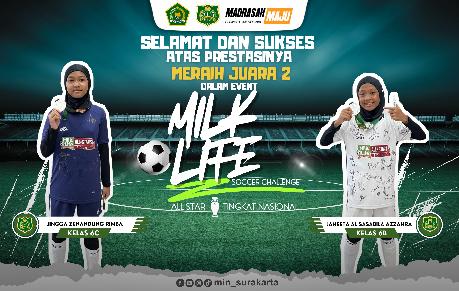 Surakarta, 30 Januari 2025 – Janeta dan Jingga, dua atlet sepak bola putri perwakilan dari Madrasah Ibtidaiyah Negeri (MIN) Surakarta, berhasil meraih juara 2 dalam ajang Milk Life Soccer All Star Putri tingkat nasional. Pengumuman pemenang ajang bergengsi ini dilakukan pada tanggal 26 Januari 2025 di Jakarta, mengukuhkan tim putri Surakarta sebagai salah satu yang terbaik di Indon...